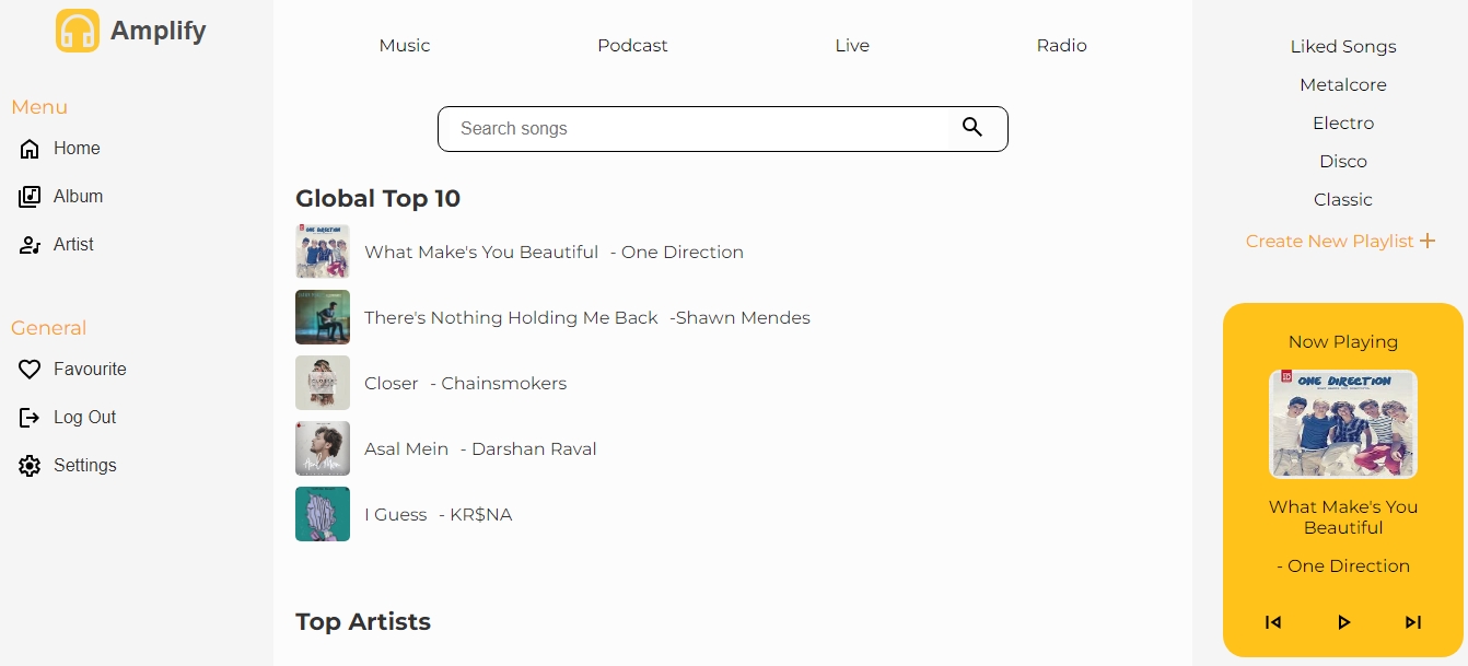 Amplify is a sleek and user-friendly music streaming web